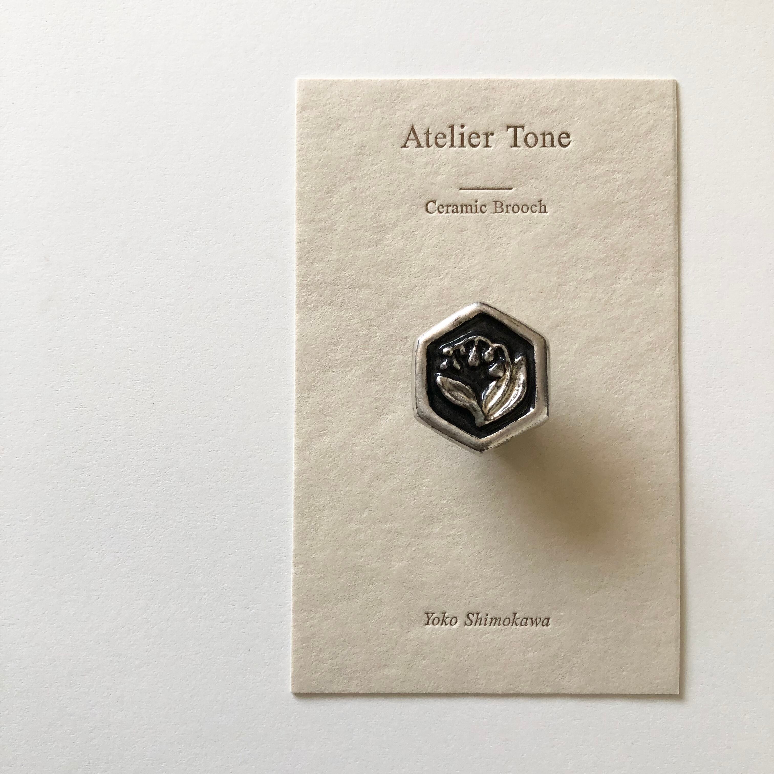 六角形ピンブローチ/スズラン/銀彩