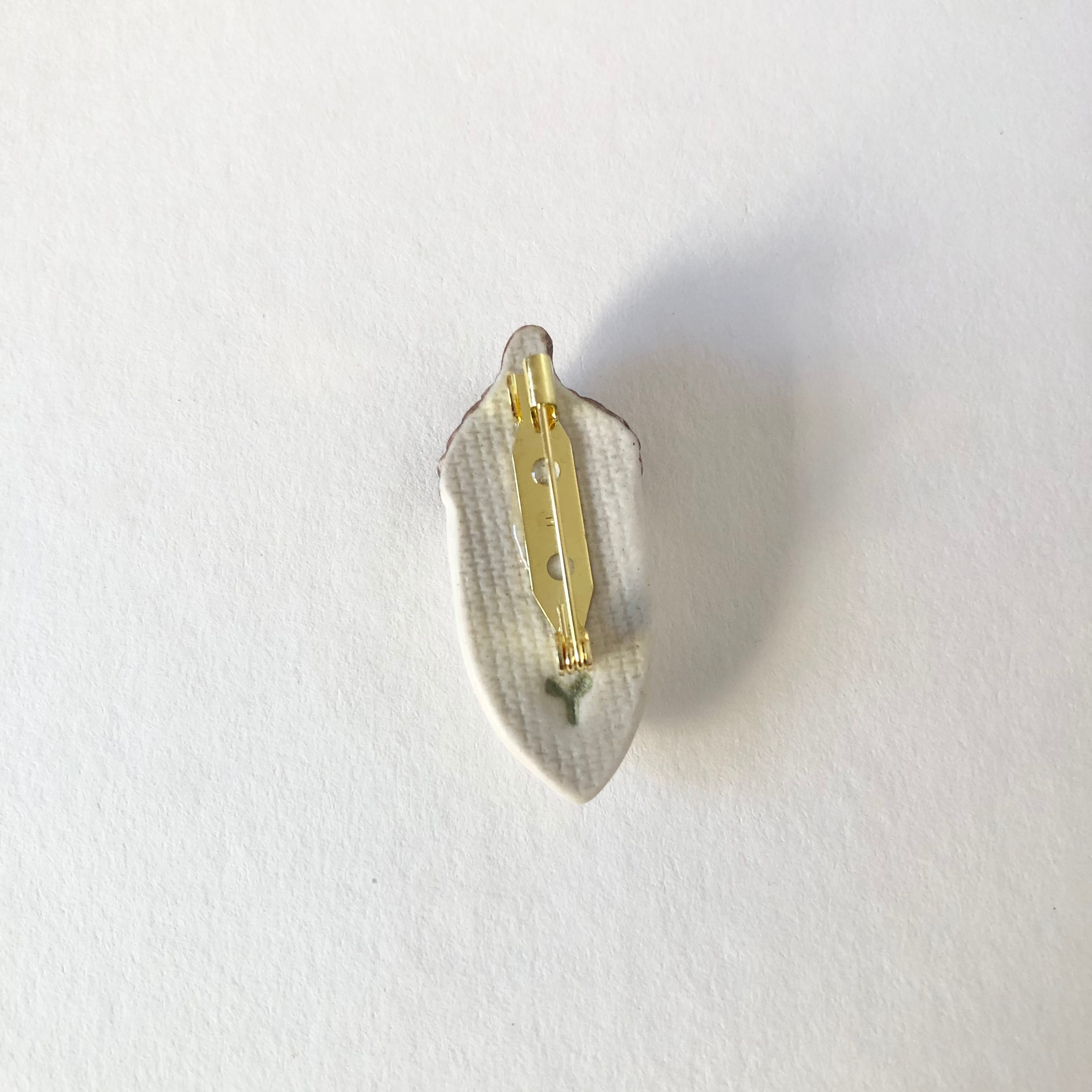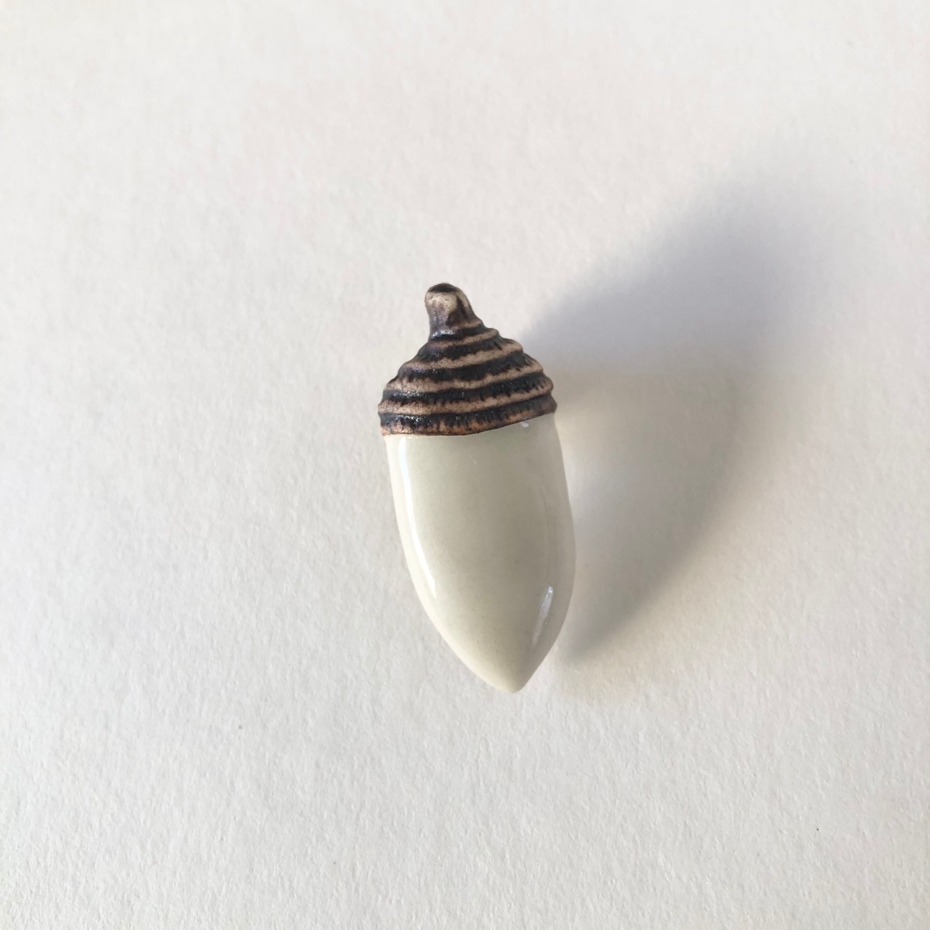 縦長どんぐり ブローチ/白