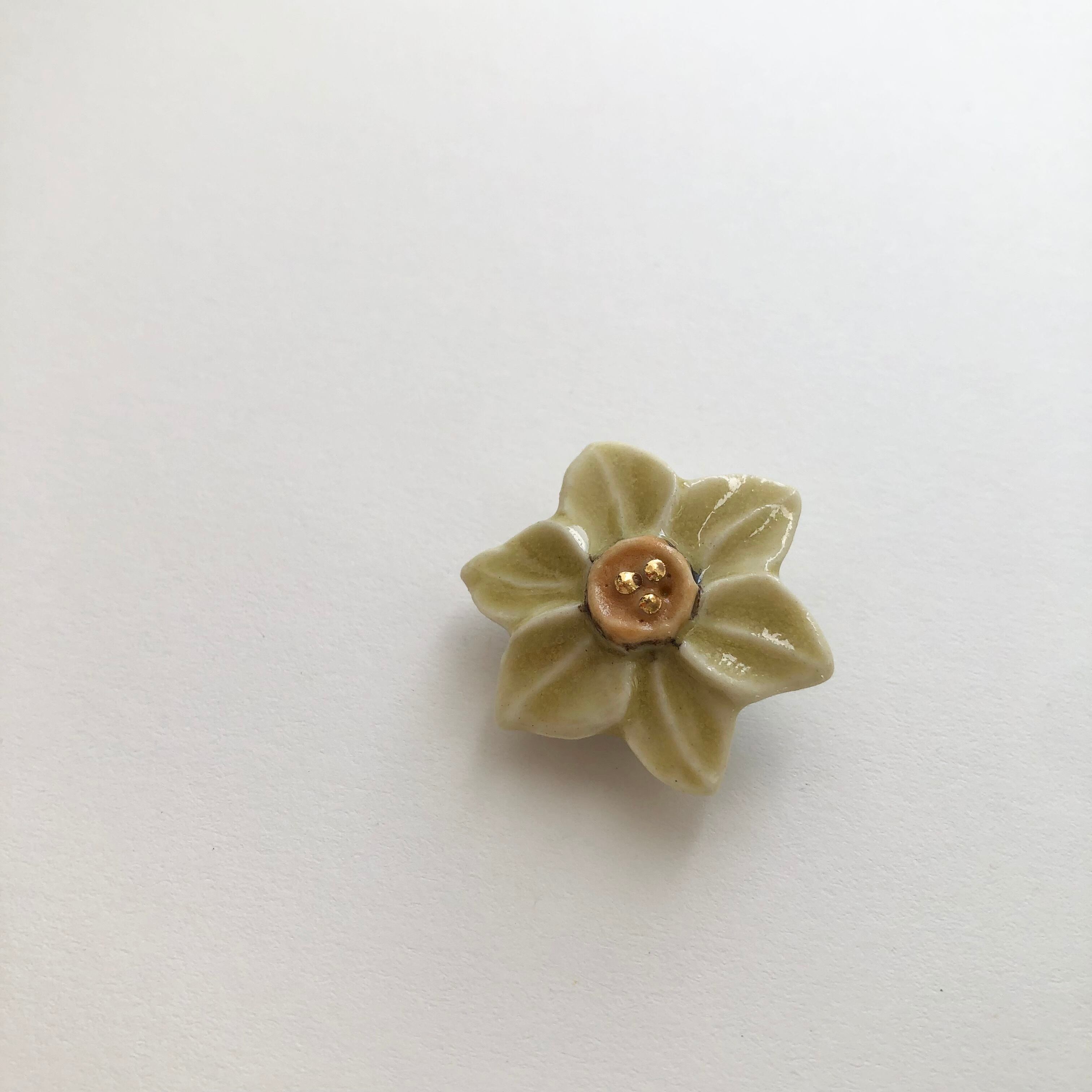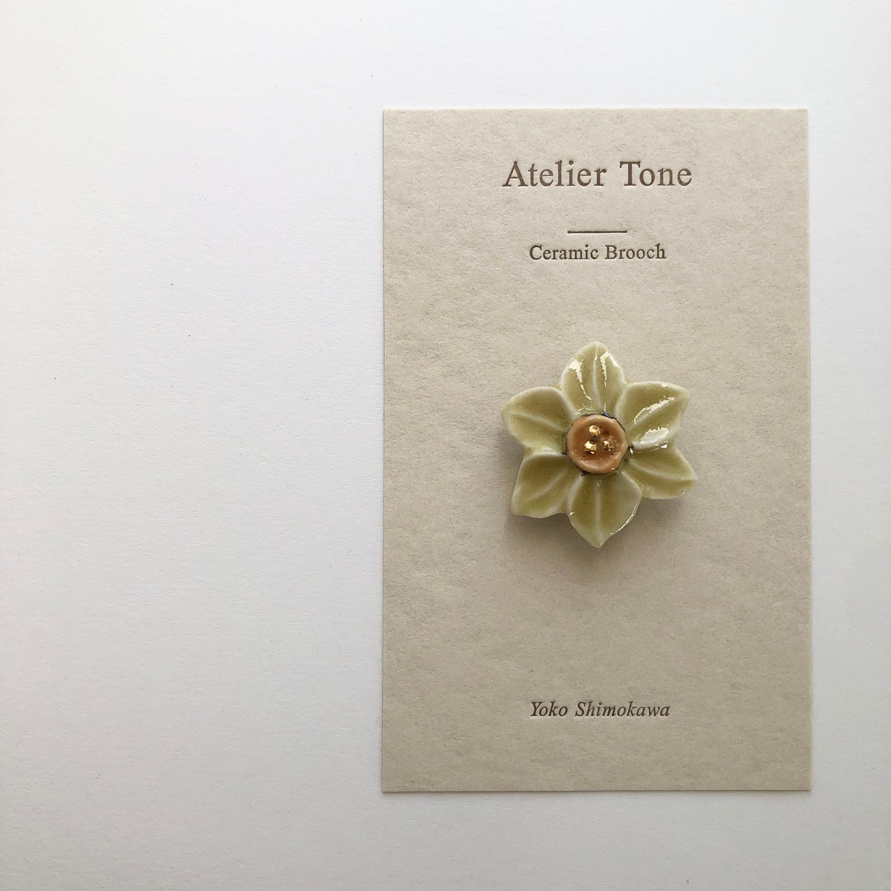 ラッパ水仙の花 ピンブローチ/黄色/金彩