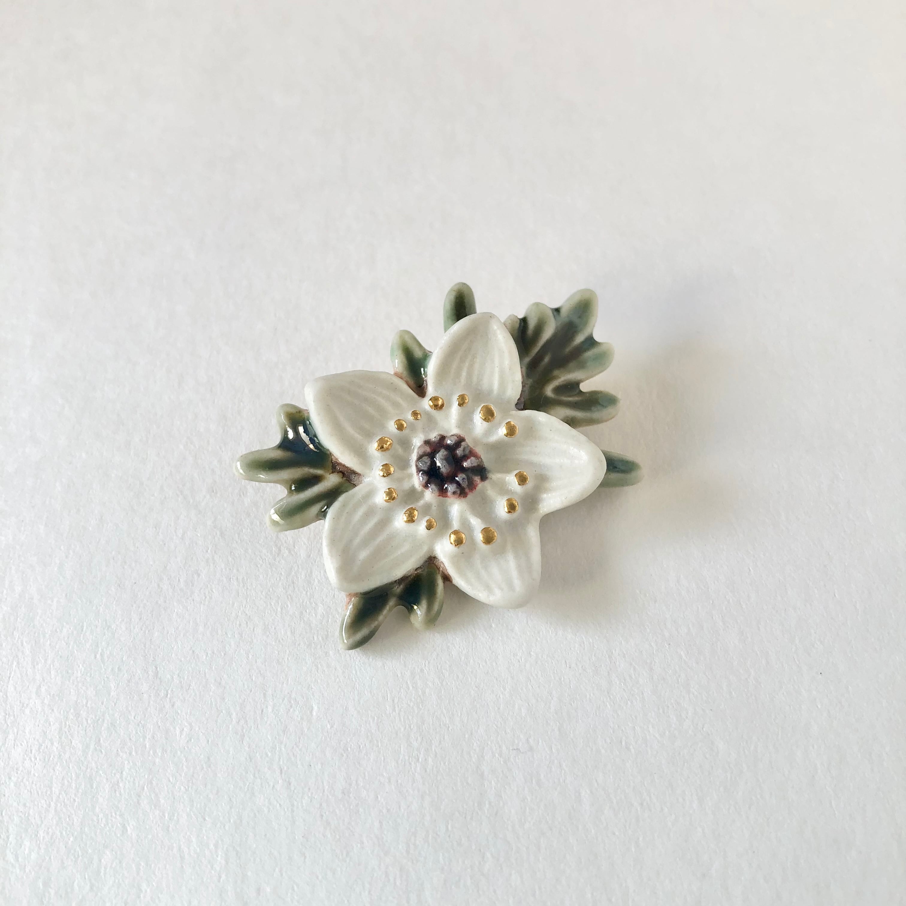 節分草 ブローチ/金彩
